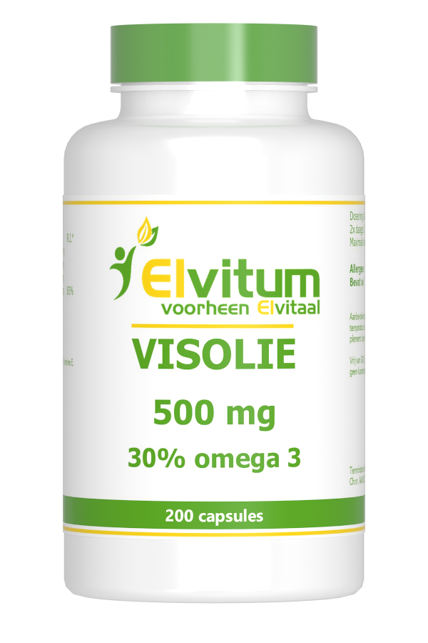 In verband met aangepaste EU-wetgeving is de naam Elvitaal gewijzigd naar Elvitum.De kwaliteit en de samenstelling van de supplementen is ongewijzigd gebleven. Elvitum Visolie 500mg Capsules bevat 30% Omega-3 vetzuren per capsule. Dosering2 maal daags 1 à 2 capsules.